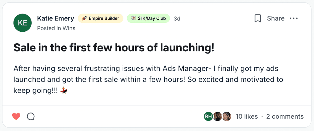 My students are getting their first sales within 24-48 hours of launching.