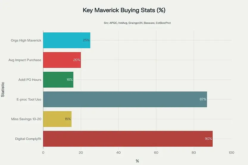 Ungeplante Bestellungen kosten nicht nur Konditionsvorteile – sie verlängern Prozesse und erhöhen Compliance-Risiken. Laut APQC liegen die Prozesskosten bei Unternehmen mit ≥ 2,5% Maverick Spend um 16 Prozessstunden pro Bestellung höher als bei Best-in-Class-Organisationen. Gleichzeitig verlieren Firmen im Schnitt 10 – 20% ihrer verhandelten Einsparungen durch Wildbestellungen, so Basware-Analysen.